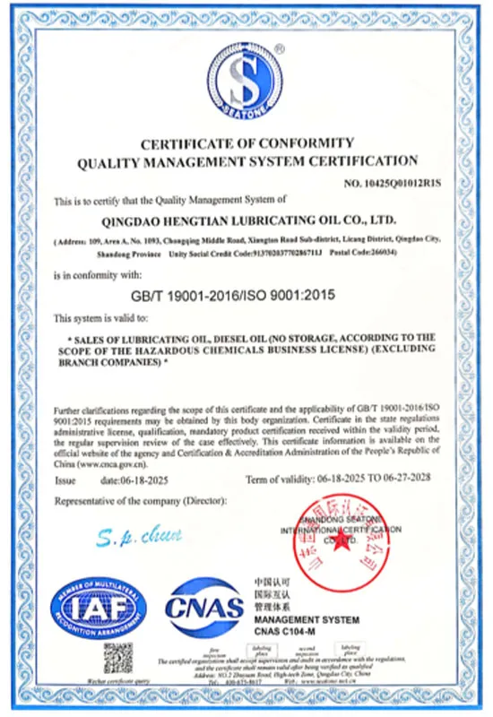 ООО Циндао Хэнтянь Смазочные Масла с момента своего основания в 1995 году занимается предоставлением высококачественных смазочных решений. Первоначально известная как Циндао Хэнтянь Смазочные Масла, компания за почти три десятилетия работы в отрасли превратилась в комплексного поставщика услуг, объединяющего мультибрендовые операции, международную торговлю и техническую поддержку. Мы представляем четыре известных бренда смазочных материалов: Туни, Кастрол, Чанчэн и Куньлунь, имея статус официального дистрибьютора в регионе Циндао. Кроме того, наша компания владеет собственным брендом «Гаосытэ», предлагая широкий ассортимент продукции, включая автомобильные масла, промышленные масла, масла для строительной техники, а также смазки, гидравлические жидкости, трансмиссионные масла, масла для турбокомпрессоров, масла для штамповки, летучие масла и смазочно-охлаждающие жидкости. Эти продукты находят широкое применение в автомобильной промышленности, промышленном производстве, горнодобывающей и энергетической промышленности, сельскохозяйственной технике и производстве резиновых изделий.